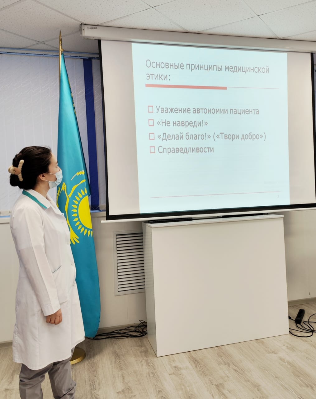 Конференция аясында медициналық этика мен деонтологияның негізгі қағидаттары мен ережелері, пациенттерді сәйкестендіру рәсімін өткізу тәртібі сияқты мәселелер қаралды.